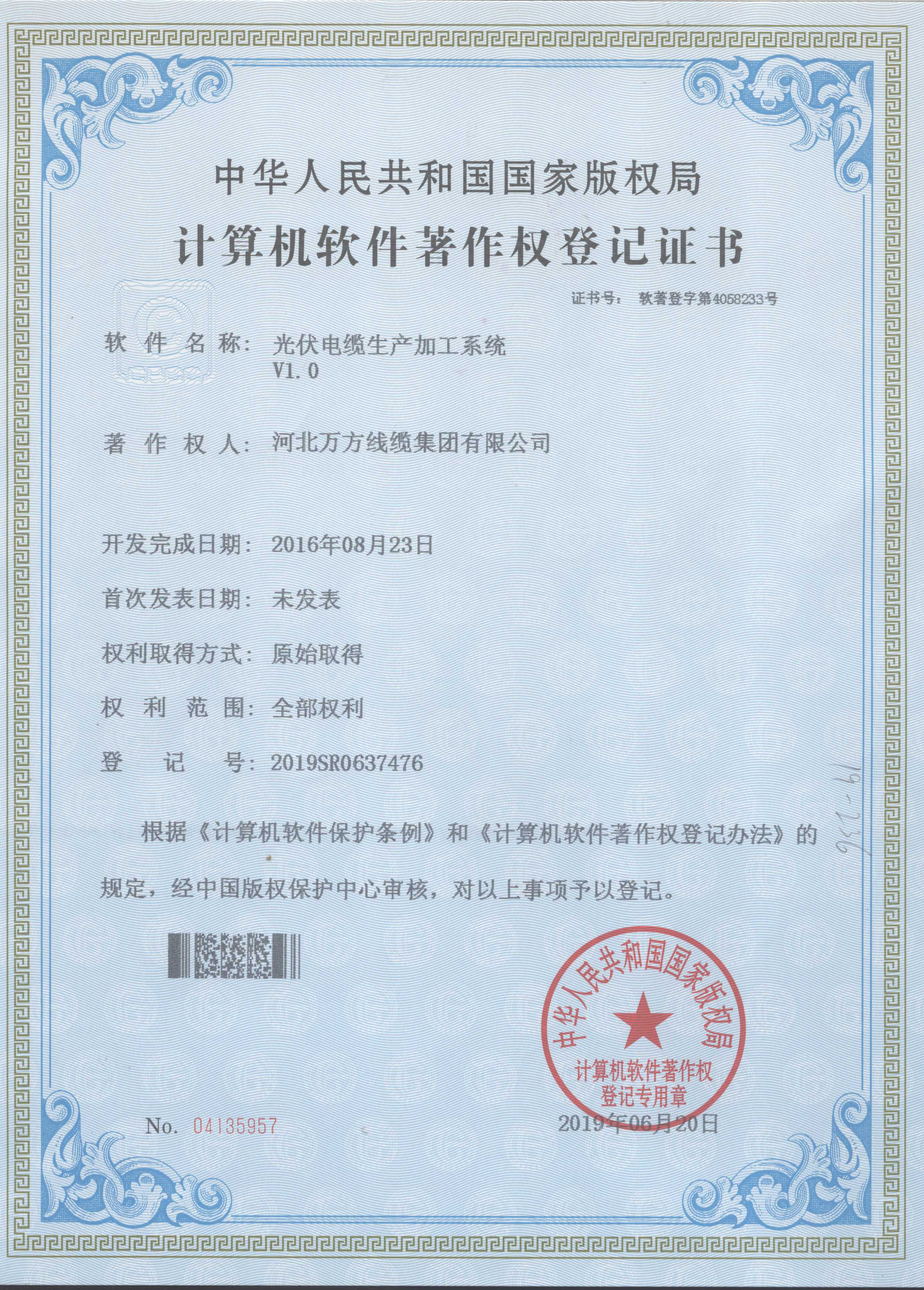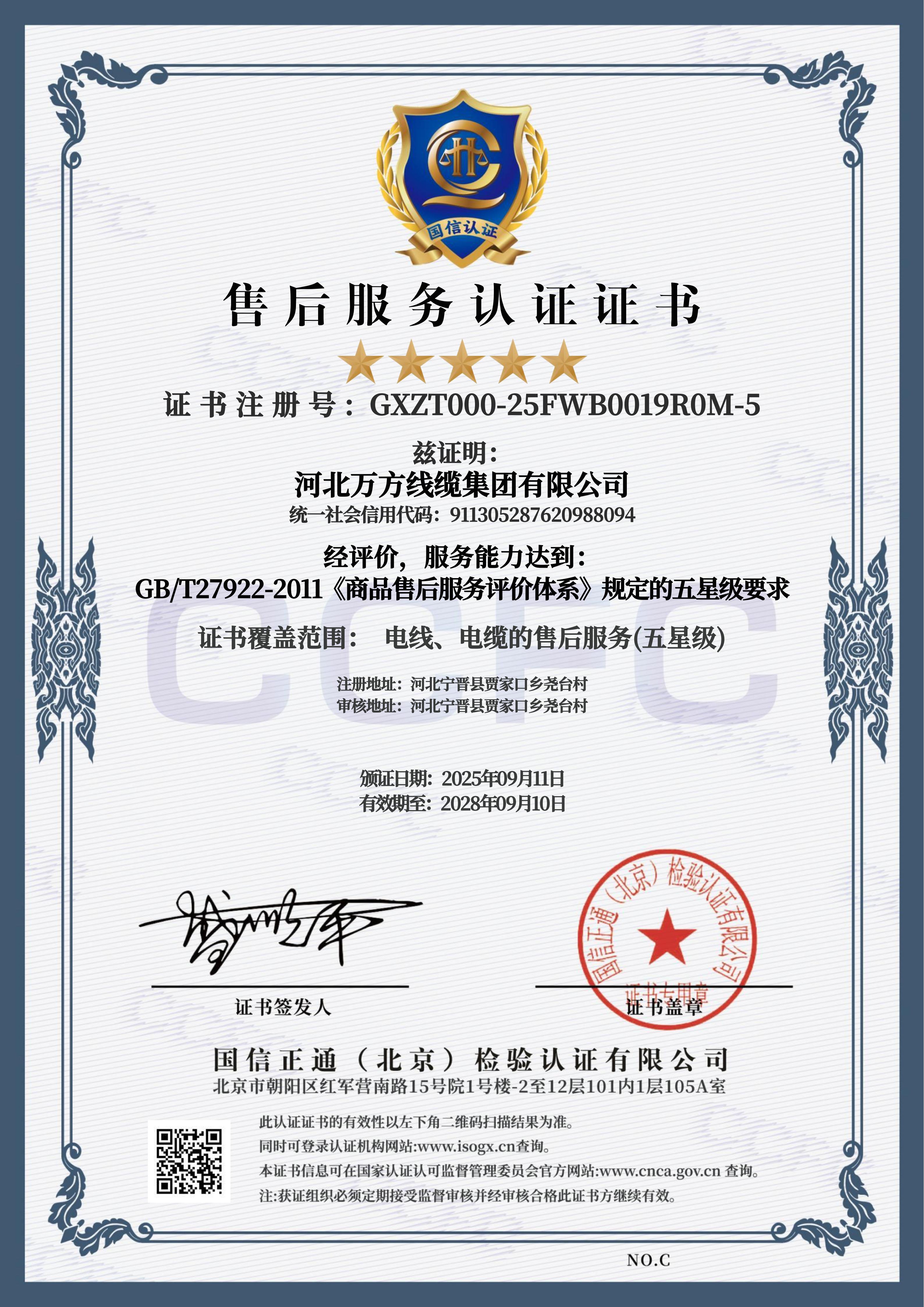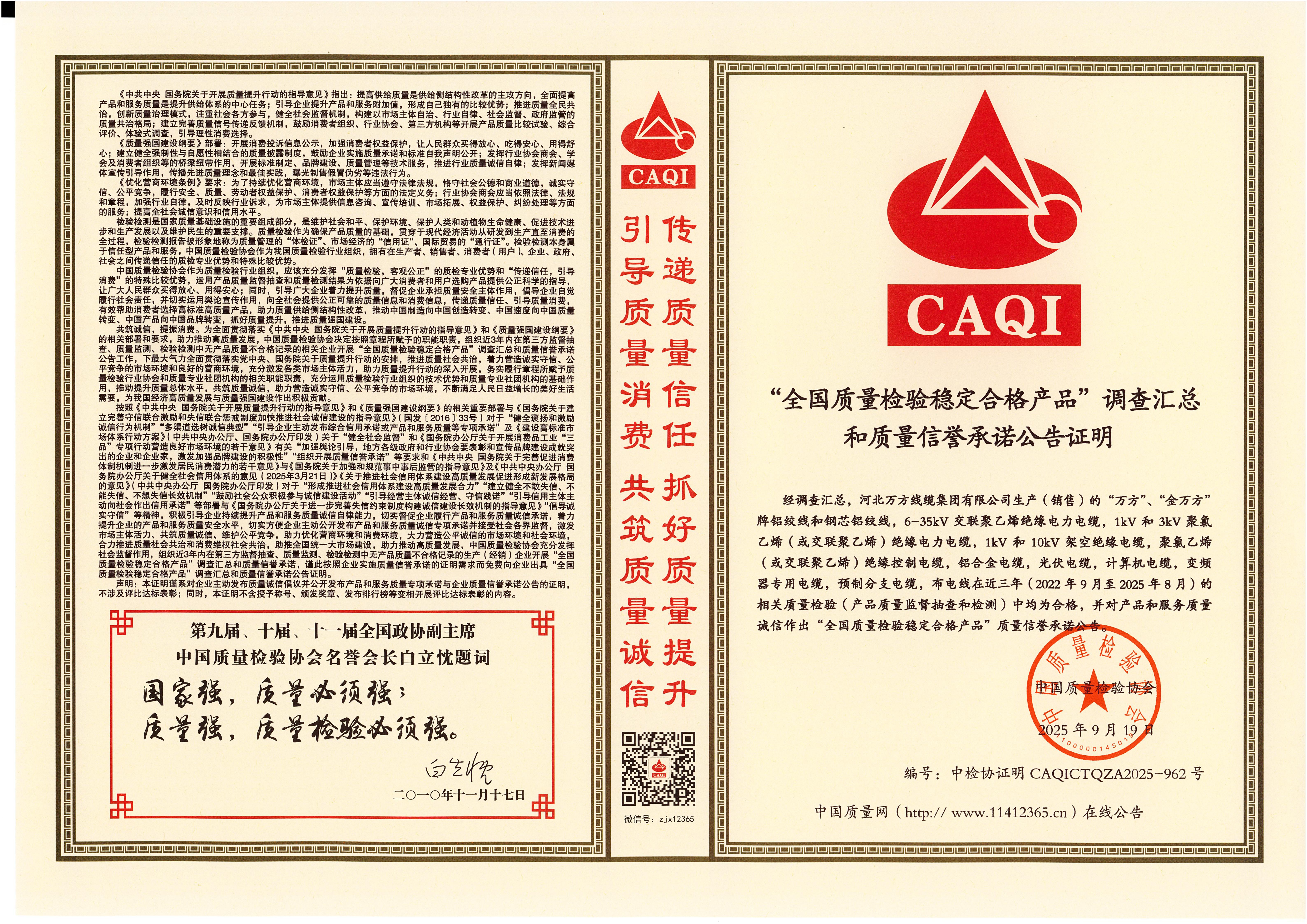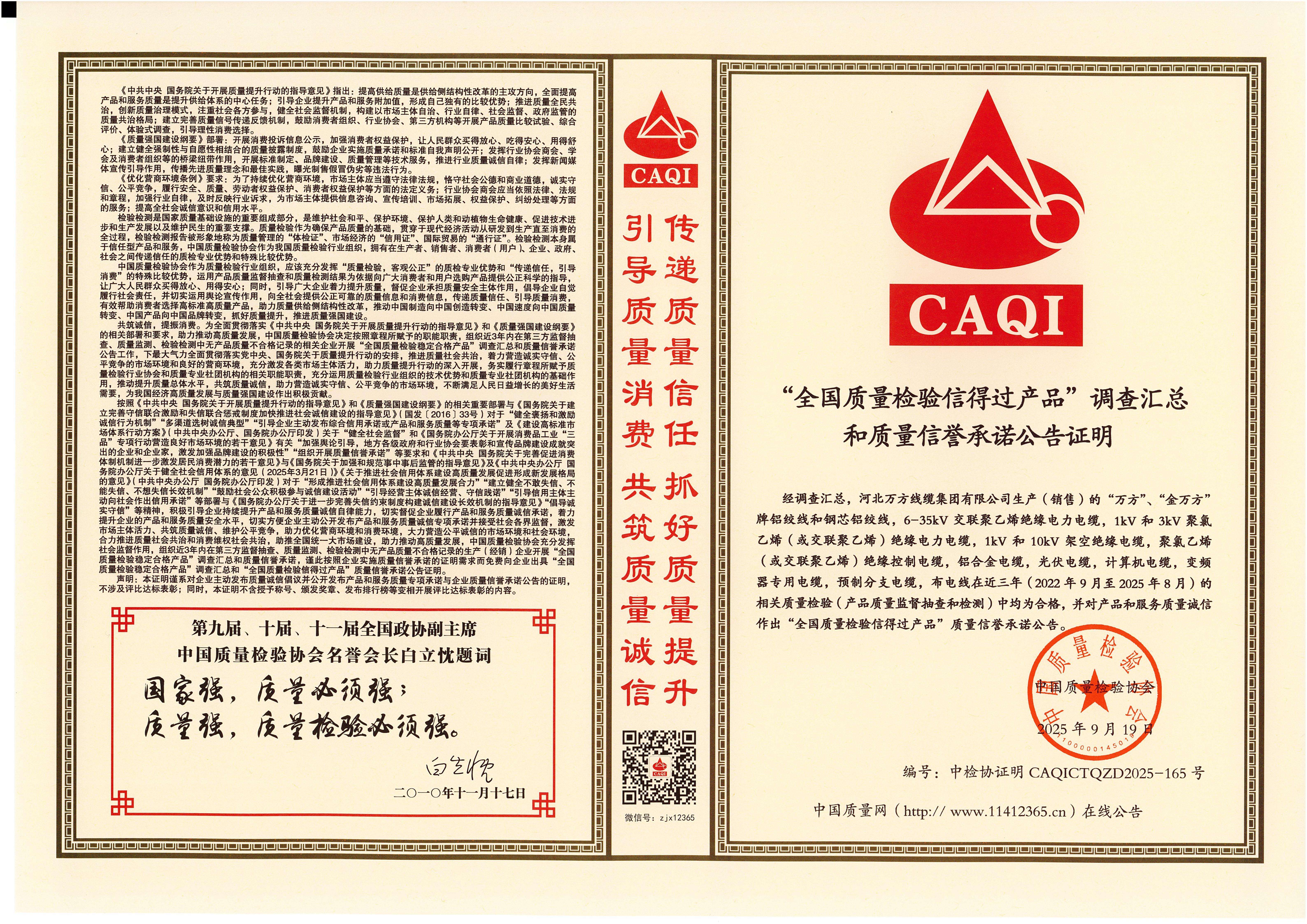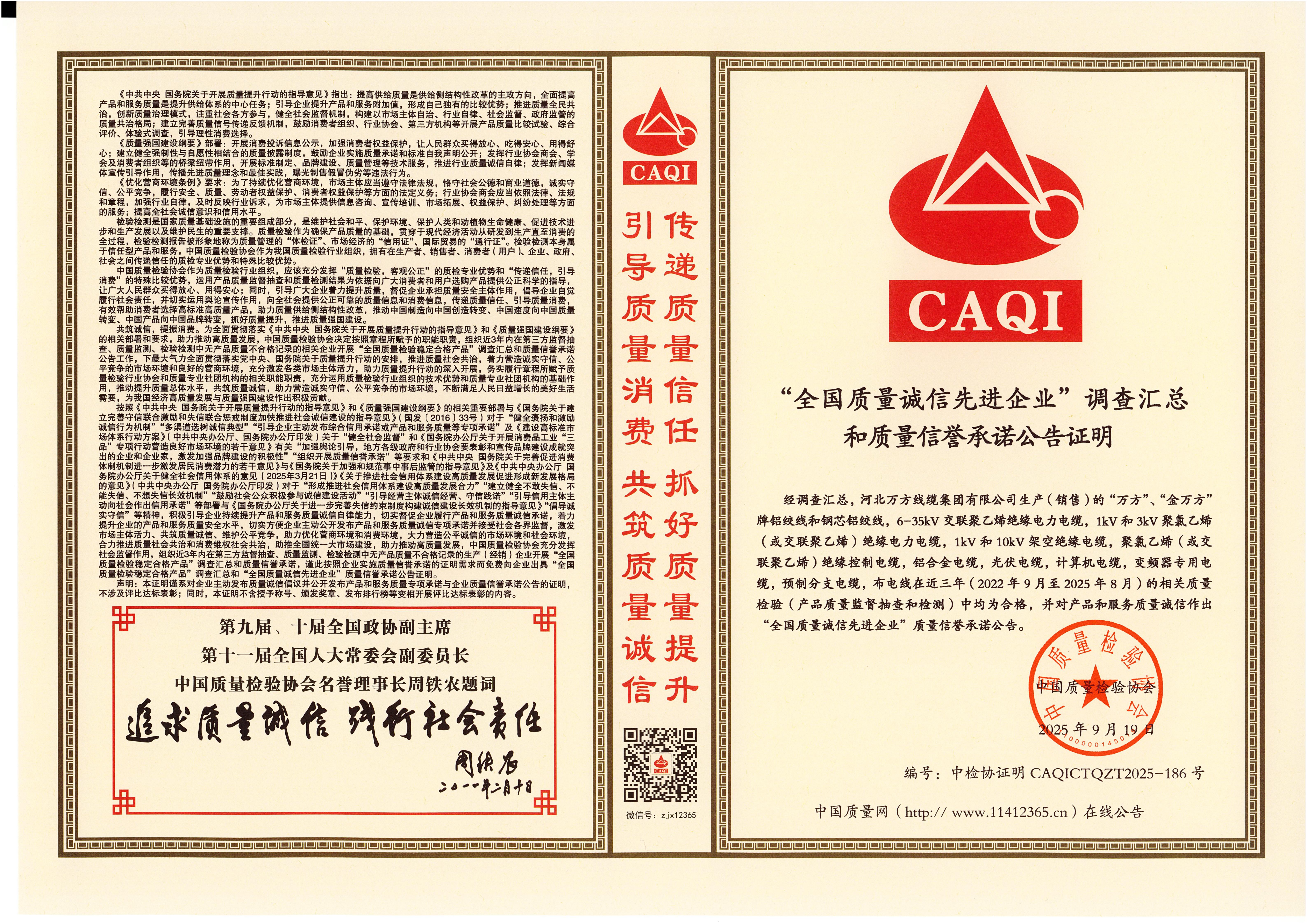 企业被评为:高新技术企业;中国驰名商标;全国行业质量领先企业;全国质量诚信先进企业;全国质量检验稳定合格产品;全国质量检验信得过产品;全国行业质量领先品牌;河北省专精特新示范企业;河北省科学技术成果证书;河北省创新型中小企业;河北省著名商标;河北省名牌产品;河北省质量效益型先进企业;守合同重信用单位;河北省消费者信得过单位;邢台市“文明单位”;国家知名品牌;中国线缆行业100强企业;中国电线电缆企业综合实力200强;河北省最具影响力百强诚信企业等荣誉称号;“AAA级”企业信用等级证书;“AAA级”资信等级证书;“AAA级”重合同守信用企业证书;“AAA级”诚信供应商等级证书;“AAA级”诚信经营示范单位证书;“AAA级”行业诚信单位等级证书;“AAA级”质量、服务诚信单位证书;碳中和承诺示范单位;绿色环保推厂企业;中国节能环保产品;绿色制造企业;邢台市纳税百强企业;邢台市企业技术中心;中国质量奖;中国工业大奖;中国科技进步奖。