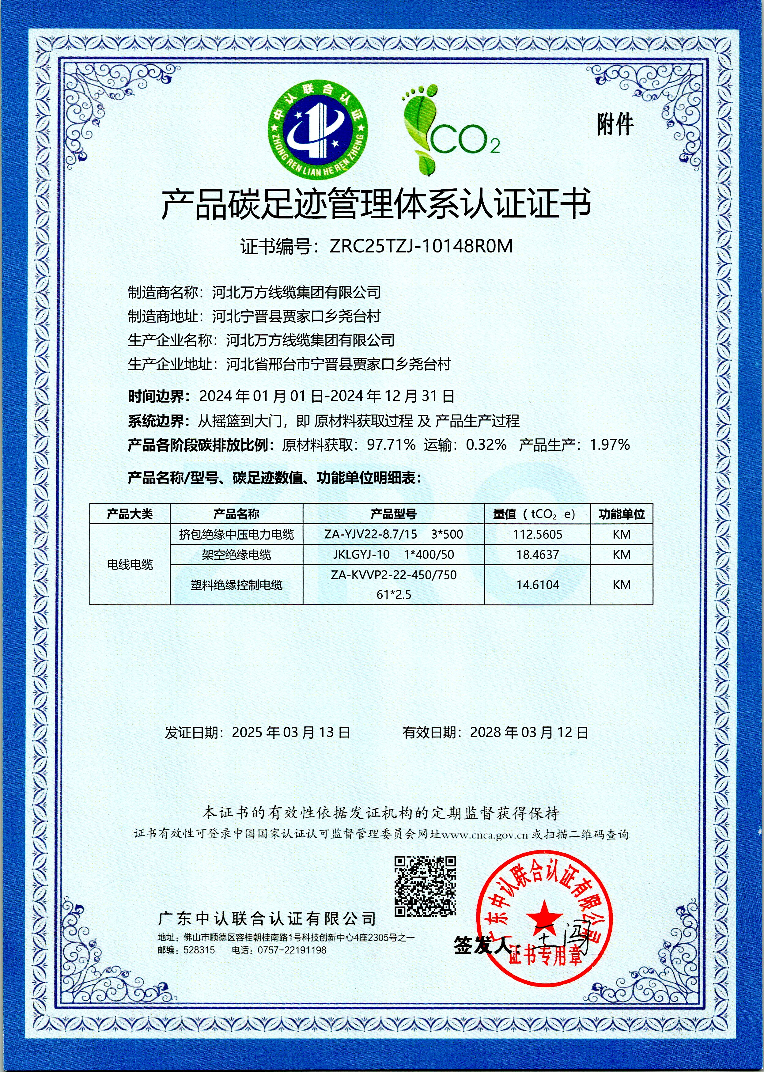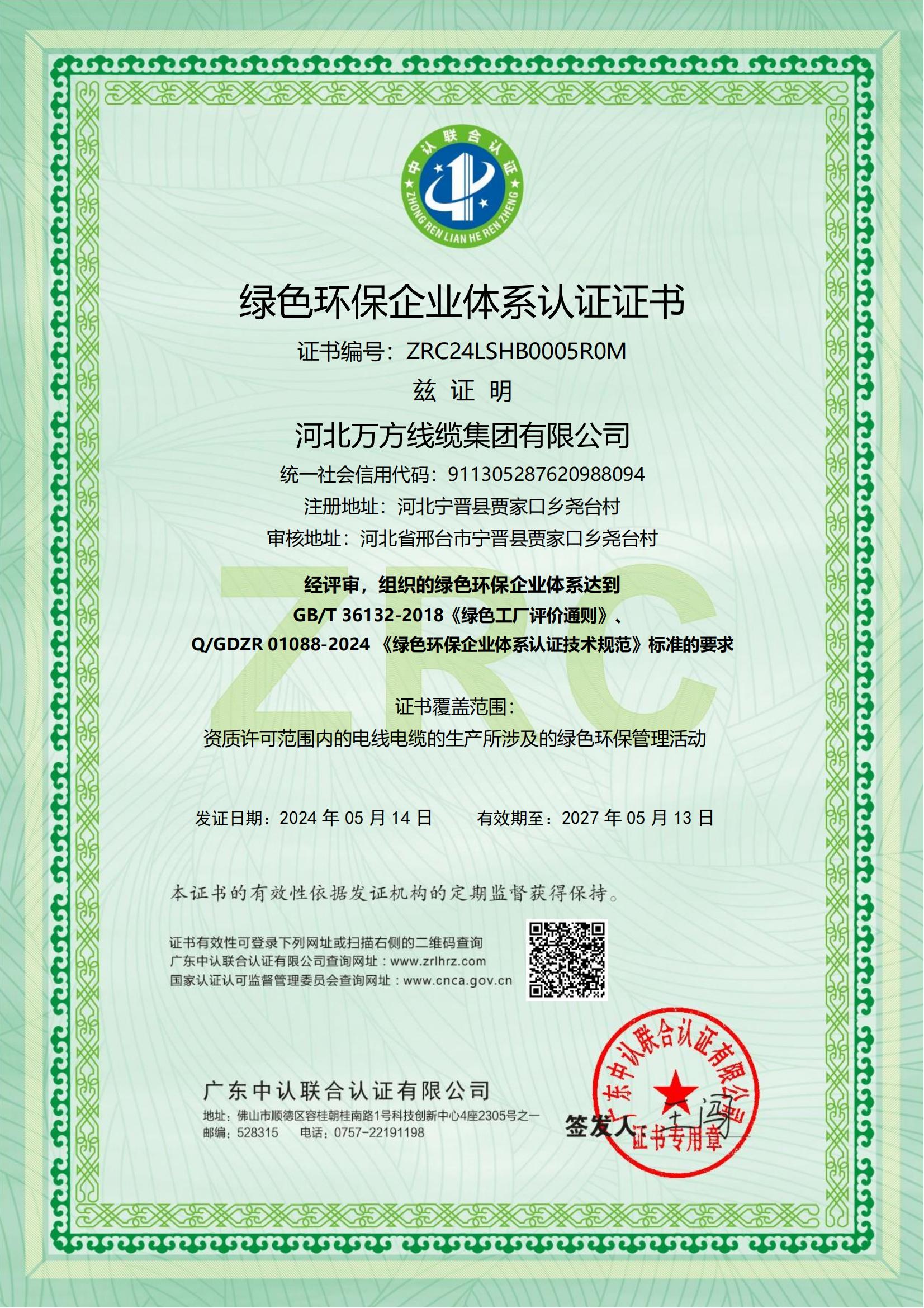 公司通过了ISO9001质量管理体系认证、ISO14001环境管理体系认证、ISO45001职业健康安全管理体系认证、中国国家强制性产品认证证书、测量管理体系认证证书、知识产权合规管理体系认证证书、ESG管理体系认证证书、绿色工厂认证证书、绿色产品认证证书、绿色运输认证证书、绿色包装认证证书、能源管理体系认证证书、绿色环保企业体系认证证书、数字领航企业认证证书、智能制造示范工厂认证证书、售后服务认证证书,相关产品已获得生产许可证、TUV认证(莱茵认证)证书、CE认证证书、PCCC产品认证、绿色供应链认证证书、产品碳足迹管理体系认证证书、产品碳足迹证书等。