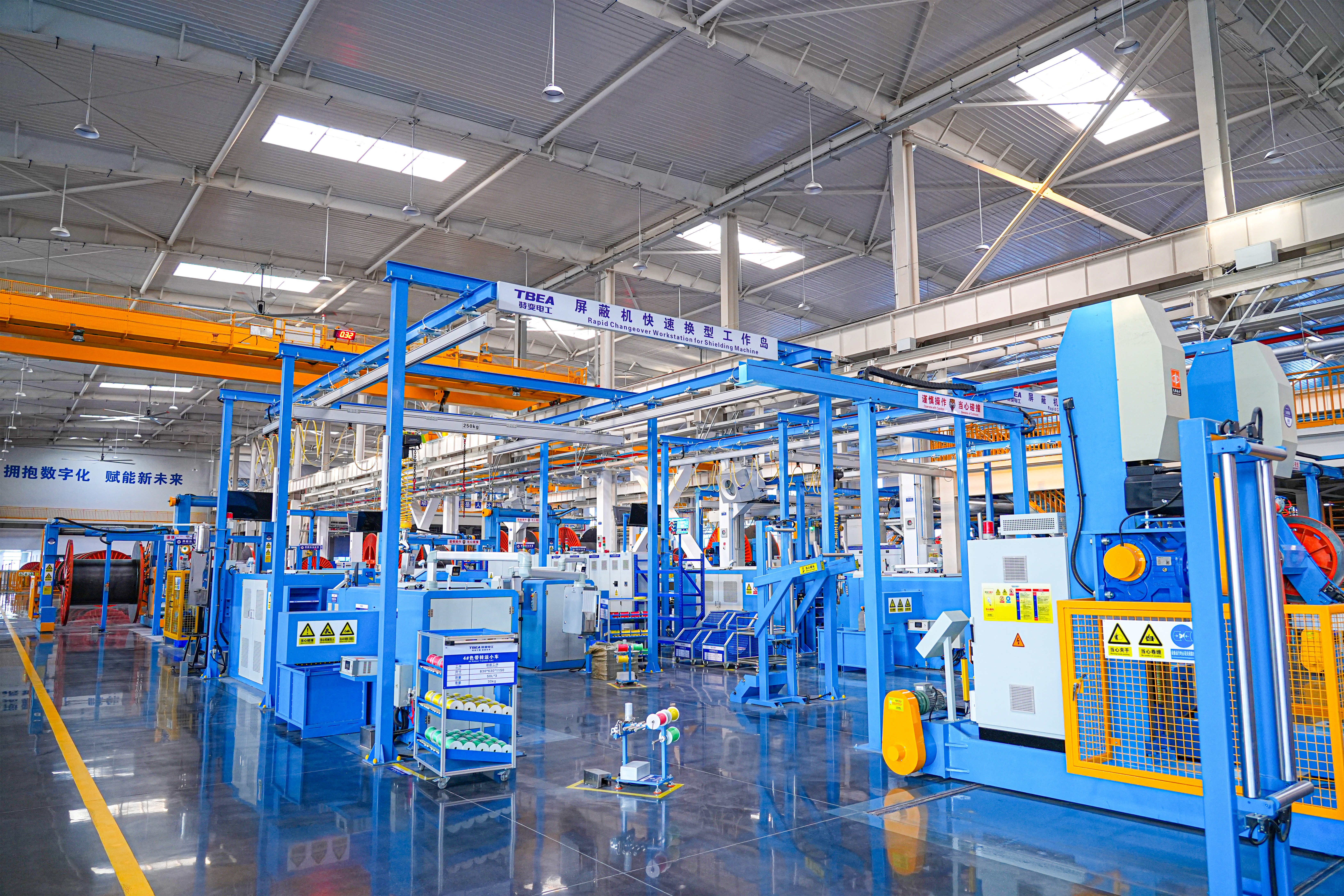 公司建有三座行业先进的数字化生产车间,具备高压电缆+电缆附件+系统设计+施工安装+运行维护一体化的全系列技术服务能力;拥有一座投资近2亿元建设的试验大厅,屏蔽背景噪音值无限趋近于0pc,具备500千伏超高压、雷冲试验、透水试验和24小时耐压能力,为产品质量检测提供了坚实保障。公司积极引入先进管理理念,与海内外线缆企业互访交流对标学习,建立了完善的企业标准体系,作为全国电线电缆标委会(TC213)、全国裸电线标委会(TC422)、中国标准化协会委员单位先后参与制定标准77项,其中国家标准37项,覆盖35-500kV电缆和电缆附件,行业标准12项,团体标准28项。取得4A标准化良好行为证书,从制度层面确保产品质量的稳定性和可靠性。