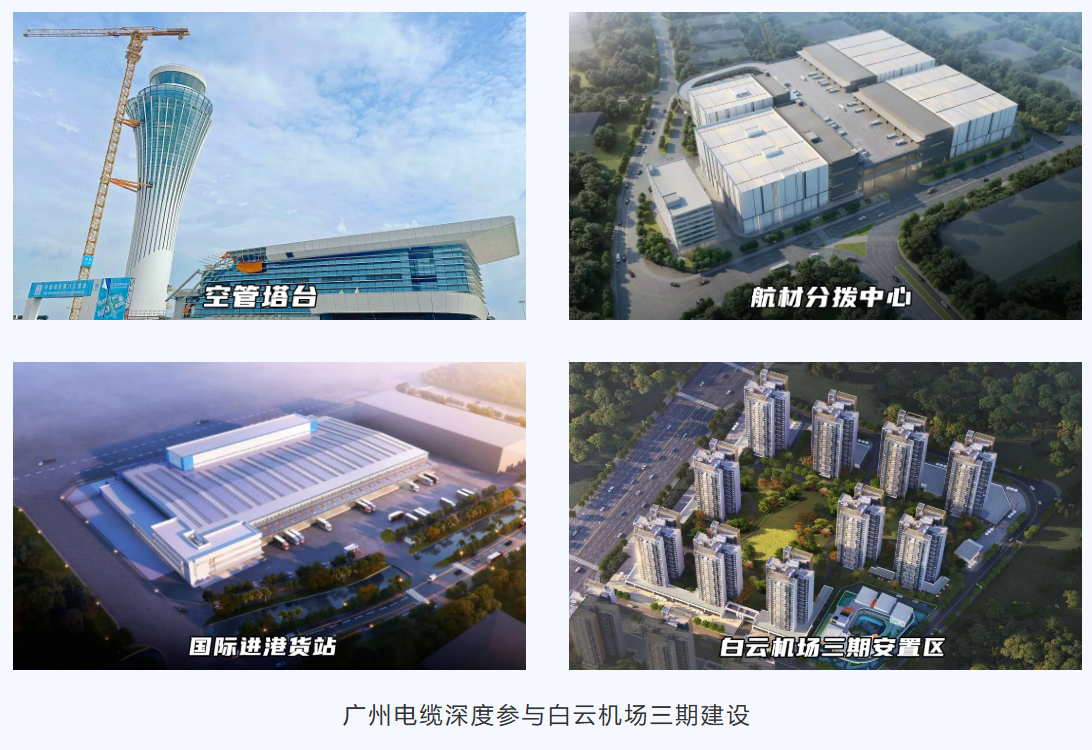 广州电缆全面参与白云机场三期扩建工程,合作项目覆盖空管塔台、国际进港货站、航空跨境产业园、安置区等关键区域。为保障项目顺利推进,公司成立专项服务团队,提供从产品选型、生产供货到现场技术支持的全流程保障,高效交付“双菱”牌电力及通信线缆,“義明”牌动力箱、电表箱等系列产品,实现工程质量与进度双达标,彰显卓越的协同执行力。