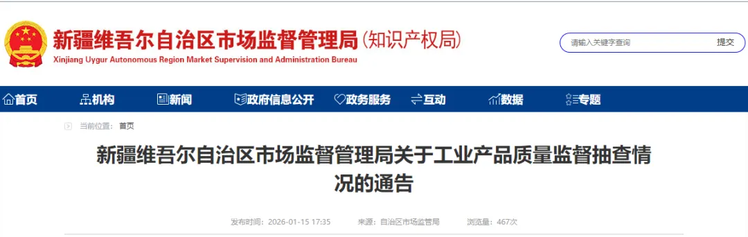 2025年,新疆维吾尔自治区市场监督管理局组织开展防火玻璃、电线电缆、外墙保温材料、餐具洗涤剂、塑料管材等24种产品质量监督抽查。
