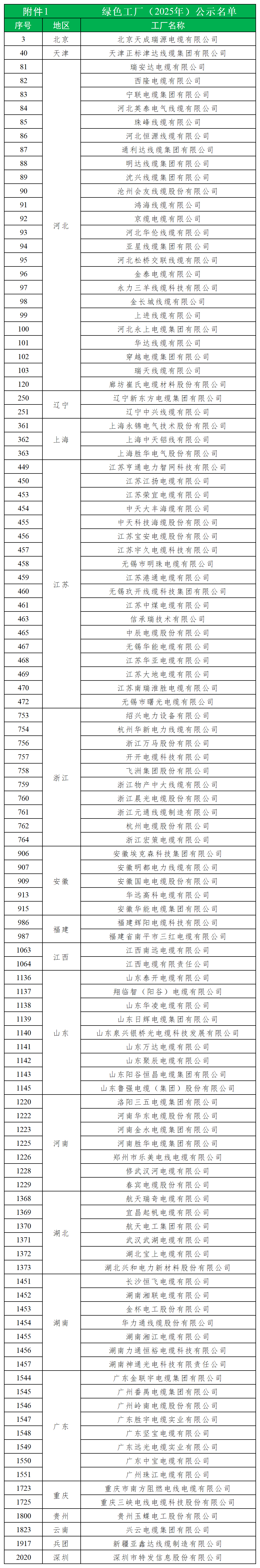 近日,工业和信息化部公布2025年度新培育绿色工厂、绿色工业园区以及动态管理调整的工厂、园区公示名单。全国共有2038家工厂上榜,其中包括线缆行业100余家。