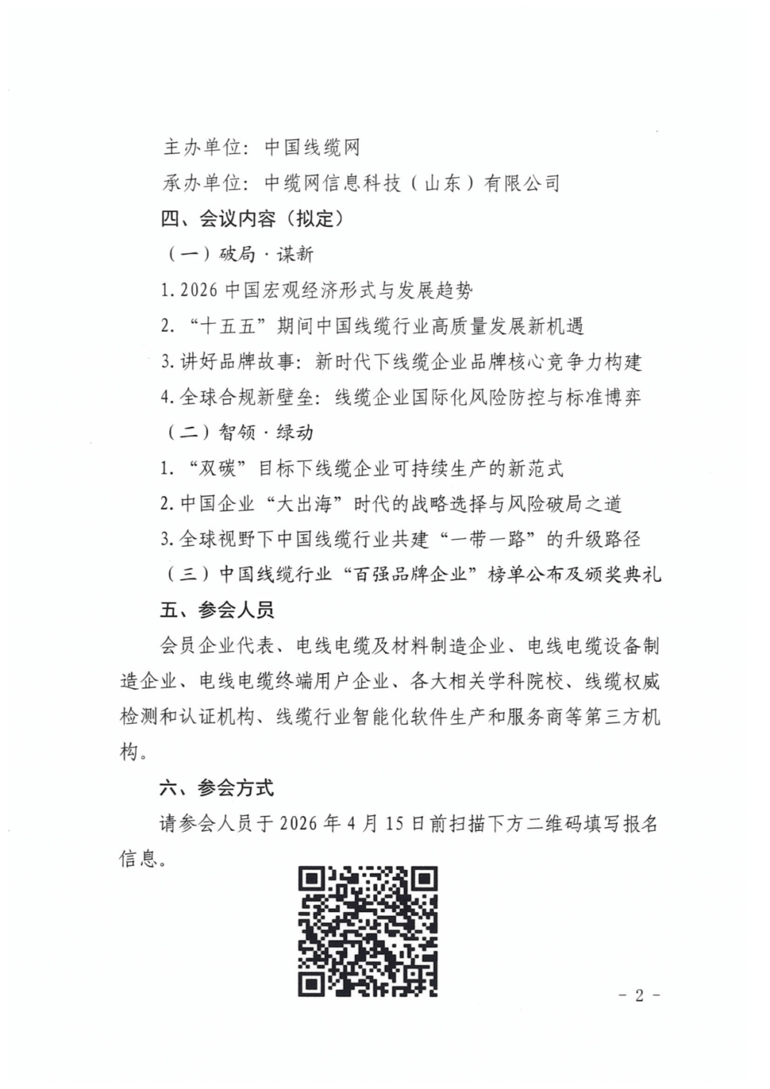 请参会人员于2026年4月15日前扫描下方二维码填写报名信息。