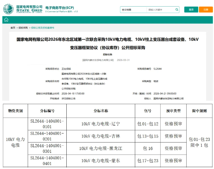 项目建设单位为:国网内蒙古东部电力有限公司、国网辽宁省电力有限公司、国网吉林省电力有限公司、国网黑龙江省电力有限公司,项目资金来自企业自有资金,出资比例为100%,资金来源已落实,招标人为国网内蒙古东部电力有限公司、国网辽宁省电力有限公司、国网吉林省电力有限公司、国网黑龙江省电力有限公司,项目通过联合代理模式,由内蒙古新正产业发展有限公司牵头具体实施10kV电力电缆、10kV柱上变压器台成套设备、10kV变压器物资品类的招标采购代理工作,联合国网辽宁招标有限公司、国网吉林招标有限公司、国网黑龙江招标有限公司共同开展配网物资区域联合采购的招标采购代理服务。项目已具备招标条件,现对该项目进行公开招标。